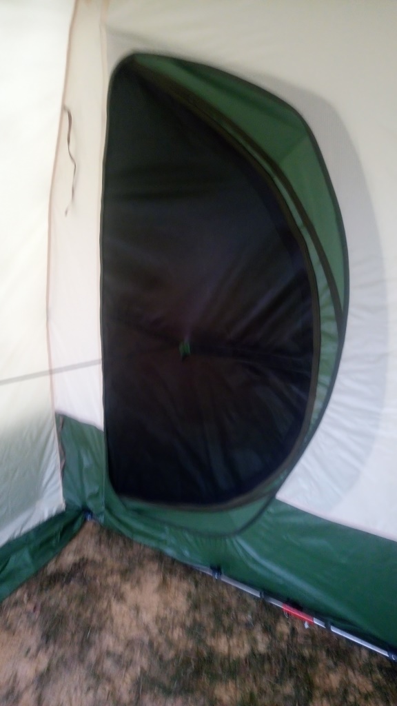Вот для сравнения 103-я и 332-я. Сумка 332-й с приличным запасом. А приличный запас никогда лишним не бывает! Когда я ее получал в ТК, она еще в полиэтилен упакована была и ужата сильно. По габаритам сравнима со 103-й, только потяжелее))). Каркас собрался быстро. Все понятно, интуитивно. Внутренний слой навесился легко и непринужденно. Собственно, как и второй. Да, на 332-ю накидывать проще чем на ВП-33))) А окно – просто фантастика! А вот и дверь. Обратите внимание на конструктив. Дверь двухслойная, с москиткой. Сама форма двери иная, нежели на 103-й. Входить-заходить гораздо удобнее. В 103-й я несколько раз споткнулся о порог.