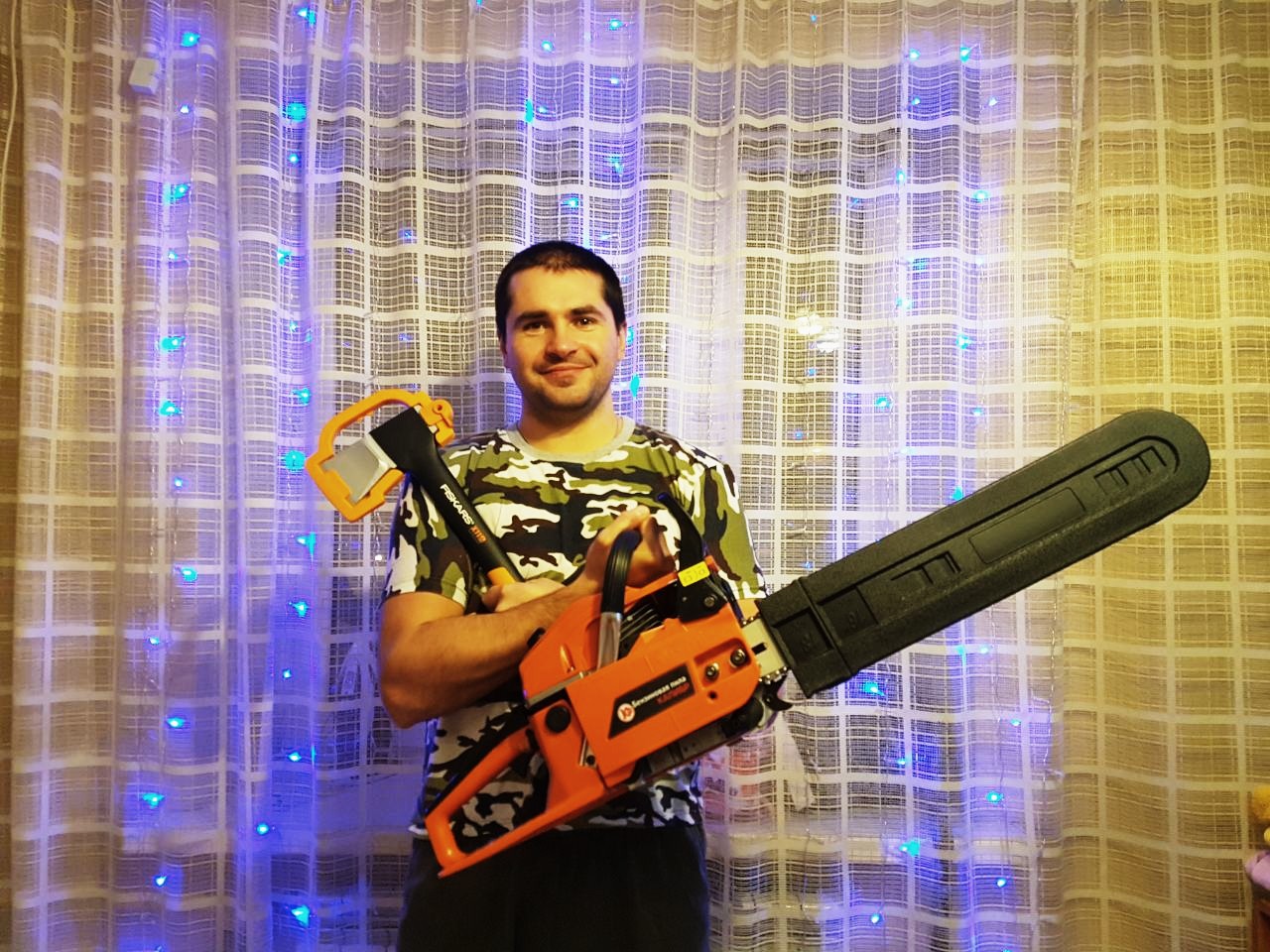 Теперь хвалится буду: наконец то в нашей семье появилась бензопила, так уж получилось что изначально хотели брать ECHO, либо Shtil ( но чего-то по финансам не получалось), но по отзывам что-то загорелся сначала одной из пил Xyter, ну да ладно, наткнулся в общем на Калибр 2600/18у, подкупили те же отзывы неплохие, но самое главное два года гарантии, ну и цена соответственно ( дешевле чем пила для льда)! Если уж за два года ничего не поламается ( сам я её вряд ли загублю), то значит она стоит того, нет так гарантия выручит. Вторым подарком был топор фискарс ( причём его привезли из Финляндии, дабы исключить возможность подделки) чурбаки колоть, да что по мелочи самое то мне) В общем к предстоящему выезду будем во всеоружии в отношении топлива! Всем ещё раз огромное спасибо за поздравления и за внимание к моему нуднопосту)
