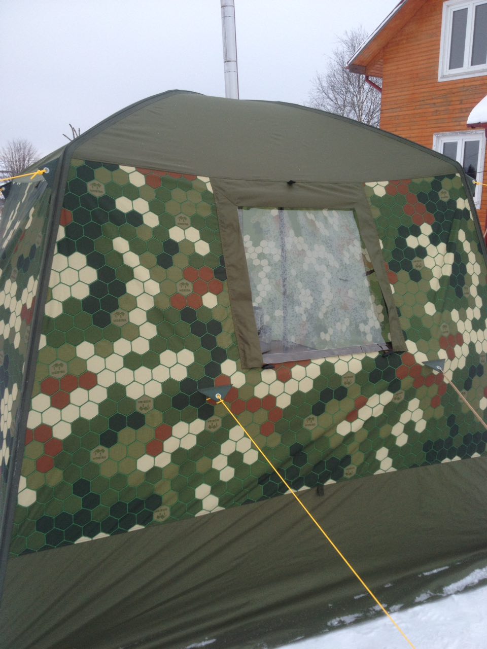 Жена постоянно дома. Планирую сделать навес, пол выложим пеноплексом, по нему - настил из сплоченных паллетов. Дымоход в уличной части утеплю, дабы не думать о засаживании.АлексейАлександрович писал(а):Руслан! Только не забывайте, что надо будет над палаткой навес построить, который возьмет нагрузку снега на себя и защитит ткань от ультрафиолета. Вот так просто оставить палатку под открытым небом, когда есть опасность интенсивных влажных снегопадов - чревато. Куб мокрого снега тонну весит. Надо быть рядом, чтобы снег с крыши чистить. Либо побыстрее навес на четырех столбах над палаткой соорудить.