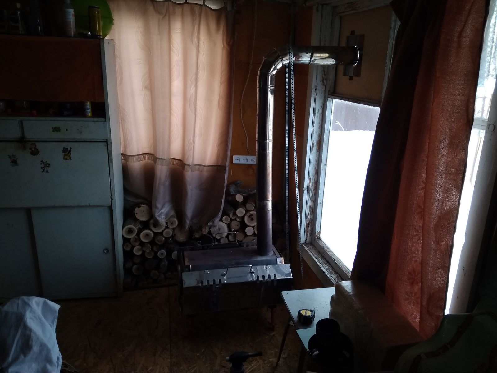 У дымохода одно колено под 45? Сколько длинна всего дымохода?vovan писал(а):Приветствую, Алексей. У меня на даче выведена просто через окно и металлическая разделка, по тому же типу, что и в палаткеОрлов Алексей писал(а):Все привет.Хочу прикупить согру к своему комплекту.Есть ещё мысль поставить ее в бытовку на даче.Только не знаю как разделку сделать через стену.Есть у кого то опыт,может готовое решение какое то есть?
