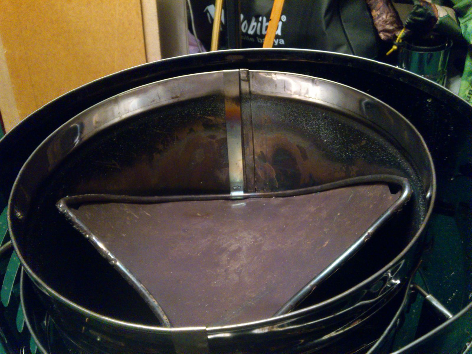 Самое ценное из изменений по моему мнению - пластина перенаправляющая движение пламени в топке. Прошу не пинать за грубоватое исполнение, точечную сварку пока не закончил, а электродом нержа толщиной 0,5мм сложно варится. При транспортировке она укладывается между топкой и отражателем. При установке в топку, она ставиться с наклоном из-за разной длинны тяг как у каминного зуба, чтоб пламя двигалось в сторону дверки