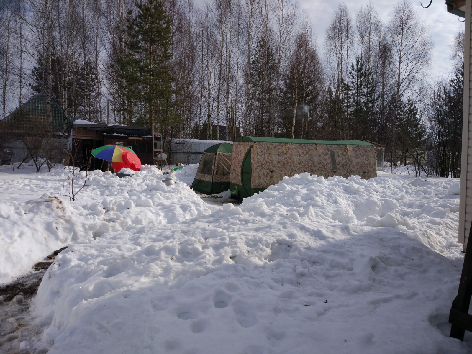 Короче! Отдыхали на даче у знакомых с нашим оборудованием. Я с семьёй, естественно жил в 442, парились в МБ-10. Кстати говоря, наши знакомые не стали топить свою баньку стационарную, когда мы сказали, что МБ-10 тоже привезём. По условиям: температура от +5 днём и до 0° ночью, думаю не ниже. За ночь в МБ-442 потратили пачку брикетов, при этом мы с женой спали на полу, покрывшись лёгким пледом, а дети на раскладушке. Баня. МБ-10 ставили без тента, ни к чему, тепло на улице. Из трудностей - уборка снега, на фото видно сугробы, хотя мы с радостью в качестве зарядочки. И вторая, самая актуальная и наболевшая проблема - это мой Мобиба комплект и мой автомобиль. У них по-ходу соревнования "кто кого". И проигрываю пока я и страдаю тоже я, мы с семьёй. При этом Мобиба продолжает расти, а Калина продолжает всё это вмещать в себя. Порой возникает ощущение, что они сговорились и выживают нас!