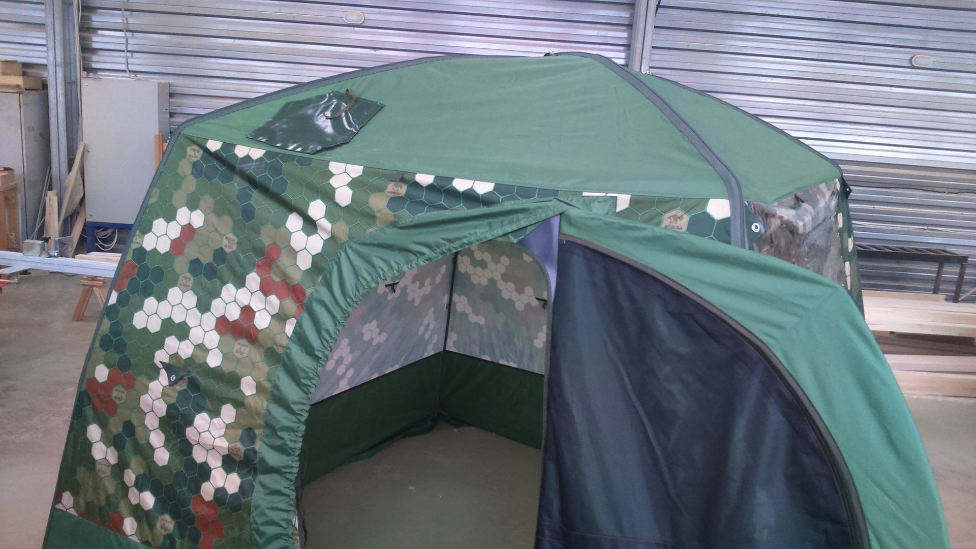 Всем привет, вот и я получил свою МБ-15. Не выдержал и собрал прямо в цехе, размер конечно, то что нужно, особенно порадовала высота потолка, вениками работать теперь гораздо удобнее(по сравнению с МБ-10. Градусник и всякие мелочи подвешивать можно куда угодно, на петли для второго слоя. Дверь удобно фиксируется на пуговицу, это решение мне особенно понравилось. С внутренней стороны дверь фиксируется на завязки, лично мое мнение я бы оставил фастексы, просто потому что это быстрее и удобнее, но это всего лишь мое мнение, завязки в полевых условия конечно надежнее. Вообщем, сказать что я доволен, ничего не сказать, думаю что сезон весна-лето-осень будет проходить только с этой палаткой. И самое главное огромное спасибо Алексею Александровичу и всему коллективу компании Мобиба за очередное отличное изделие!