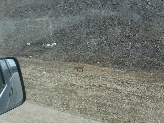 За Биробиджаном покормил хитрую еврейскую лису. Мне говорили про неё. Выходит к машинам за едой. Дал ей колбасы, сфотал и двинул дальше.