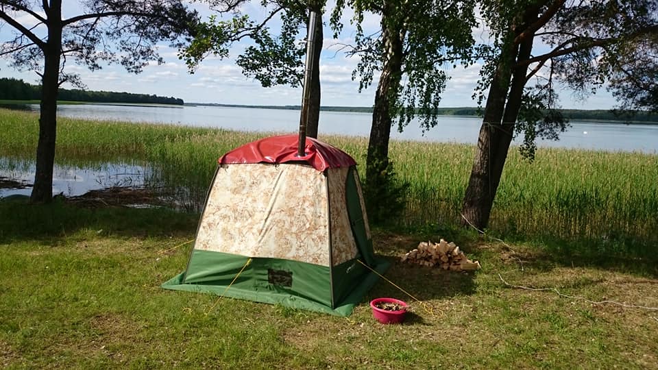 Через 50 минут после начала установки палатки в нее нельзя было зайти, предварительно не проветрив несколько секунд. Сначала отрывались дети, не давая погреться взрослым. Ведь после бани можно было купаться, а до этого их в воду не пускали ввиду прохладной погоды.
