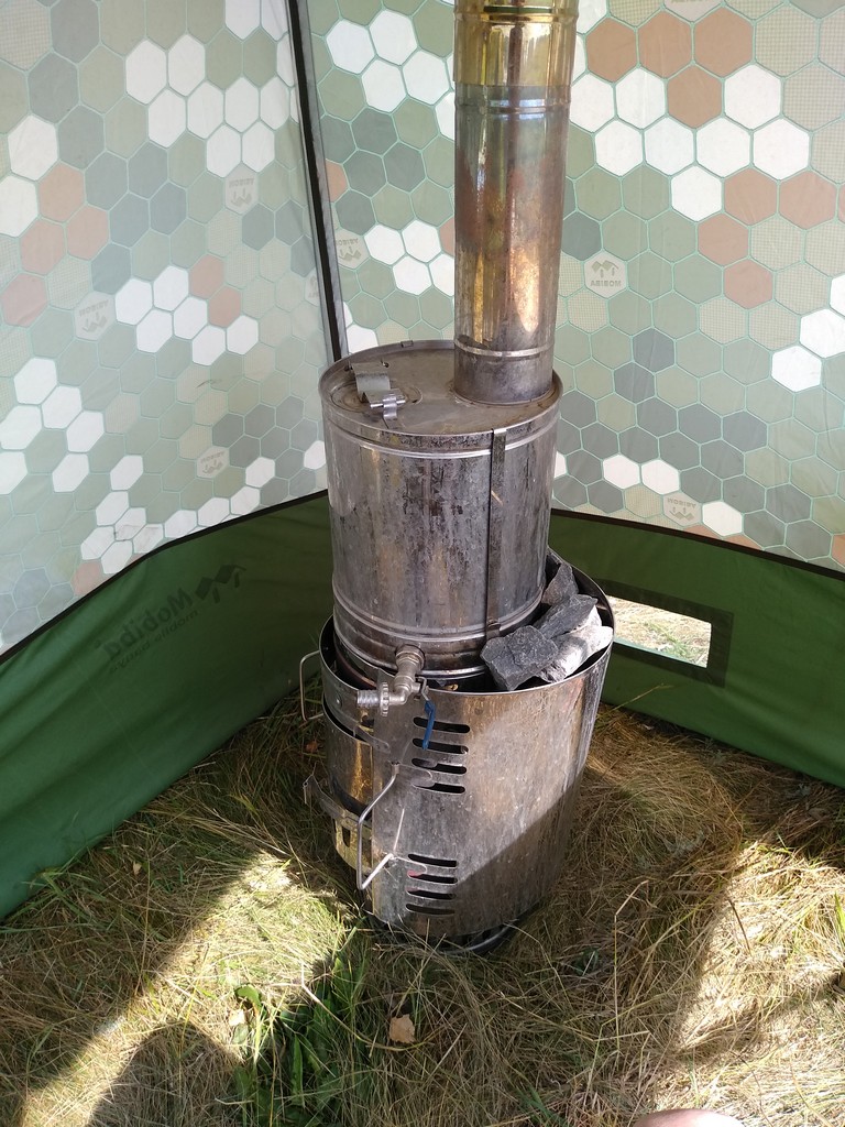 Все забываю опубликовать миниотчет-отзыв одного из обладателей печи Паробомба... "Святой долг каждого гвардейца нести Мобибу в массы" (С) Палычь. Ранее я организовывал ознакомительный выезд с мобильными банями соратников с других джипперских клубов. Ребята заинтересовались продукцией Мобиба, а именно печей. Ну и как говорится "голь на выдумку хитра" после изучения ттх печей решила приобрести Паробомбу и нашашлычить на нее старую палатку-шатер. Они всегда отдыхают большой компанией и поэтому их выбор/решение был обусловлен отсутствием денег но наличием большого желания.
