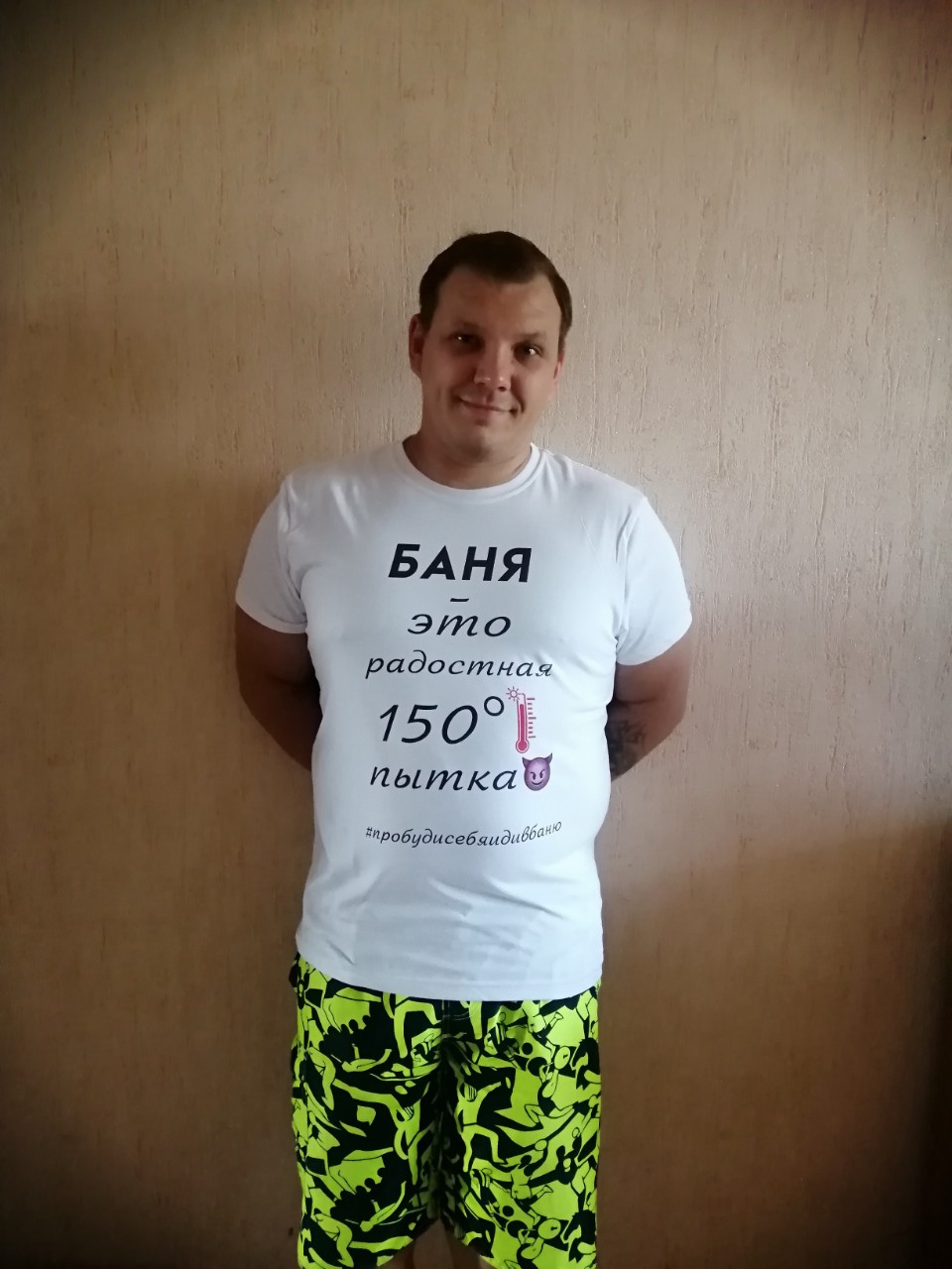 Могу посоветовать в следующий раз поднять повыше блок с графикой на спине майки. Так и виднее будет, и можно будет ее заправлять в брюки не теряя часть надписи.