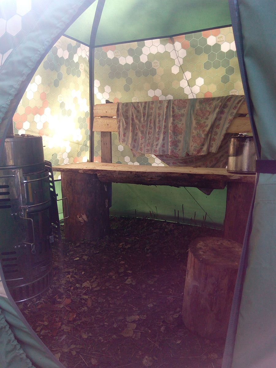 МБ-15 в связке с Согрой отлично справилась со своей ролью. Готовили как на печи, так и на газовой плитке. Каша со свеженамятой брусникой по утрам, тосты на Согре, молотый кофе, сваренный на ней же... После такого завтрака готов к любым свершениям и дальнейшему получения удовольствия. Иногда не хватало вентиляции под потолком, спасались дверью с москиткой или полностью открытой, открыванием верхнего края (или всего) окна, приподниманием юбки поленом. Да, чуть тесновато всемером, но повторюсь, мы худые, да и собирались за столом все вместе не каждый прием пищи. Через петли для клевант внутреннего тента натянули веревки, и использовали их как сушилку для вещей. На ночь набил полную топку, и все постиранное с утра было сухое.