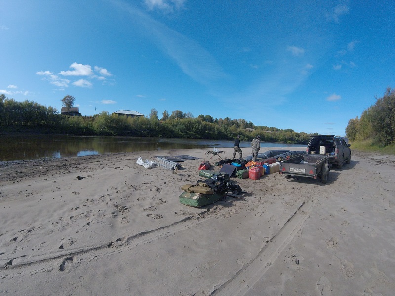 Итак, долго ли, коротко, но примерно к полудню доходим до Новиково. Дорога оказывается хуже, чем ожидалось: обильный иней и роса стаяли, начисто расквасив верхний слой грунтовки, а потому ехать приходится медленно и осторожно. Находим удобный подъезд для трала, привезшего «Выдру», и место для разгрузки и сборки «Воеводы», разгружаемся, сбрасываемся на воду и готовим суда «в первом приближении».