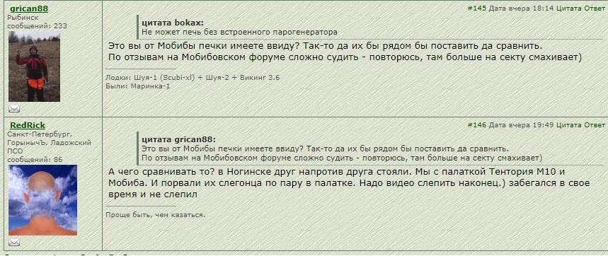 Больше интересны комментарии,я там тоже немного пообщался) печь рыбакам зашла, а вот палатки что-то никак, интересно почему?