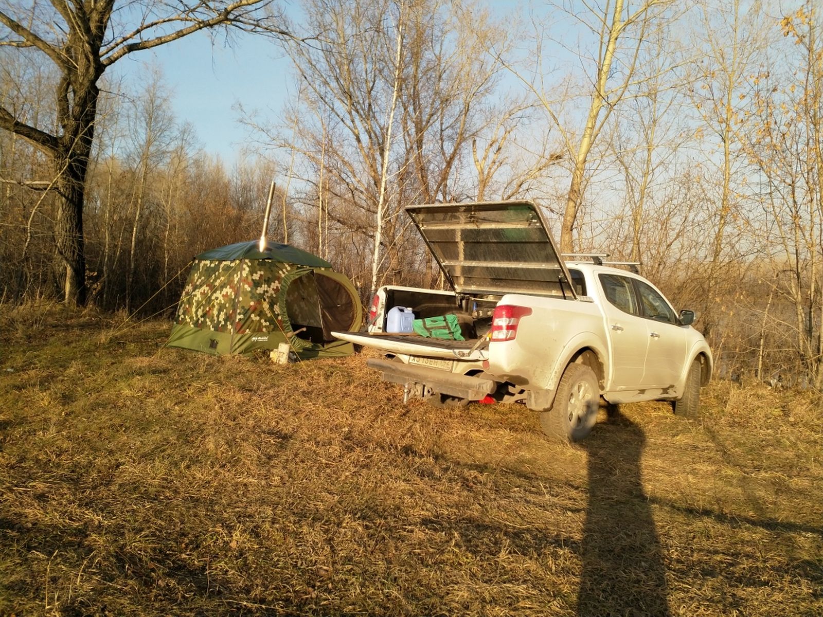 Ну вот, с очередной обновкой, выкуплены шикардос и накидка ИЗН-15. Значит баньке быть! Погода в воскресенье чудесная, солнечно и легкий морозец, запланированная на выходные замена светильников в гараже выполнена, срочная загрузка снаряги и бегом на приглянувшееся местечко.
