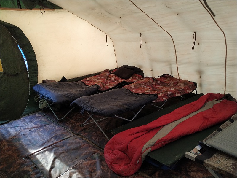 Тем временем погода портится, начинается дождь и поднимается ветер, что загоняет нас под крышу МБ-15, где мы и заканчиваем с готовкой, после чего приступаем к ужину. Сытыми и довольными мы расползаемся спать, на всякий случай еще раз проверив швартовку судов и колышки палаток: ветер и не думает стихать, а наоборот, усиливается. Он гнет выгибает каркасы «пятнашки» и «кайфандры», рокочет тентом Р-44, воет в штормовых растяжках и гудит в трубе «Согры». В итоге мы с Ваней, не сговариваясь, по очереди встаем проверить лагерь и суда: мало ли что? Тем более, что мы на острове стоим, вода с трех сторон, а с четвертой – илистый непросохший песок, так что выходить отсюда пешком в случае ахтунга, некуда.