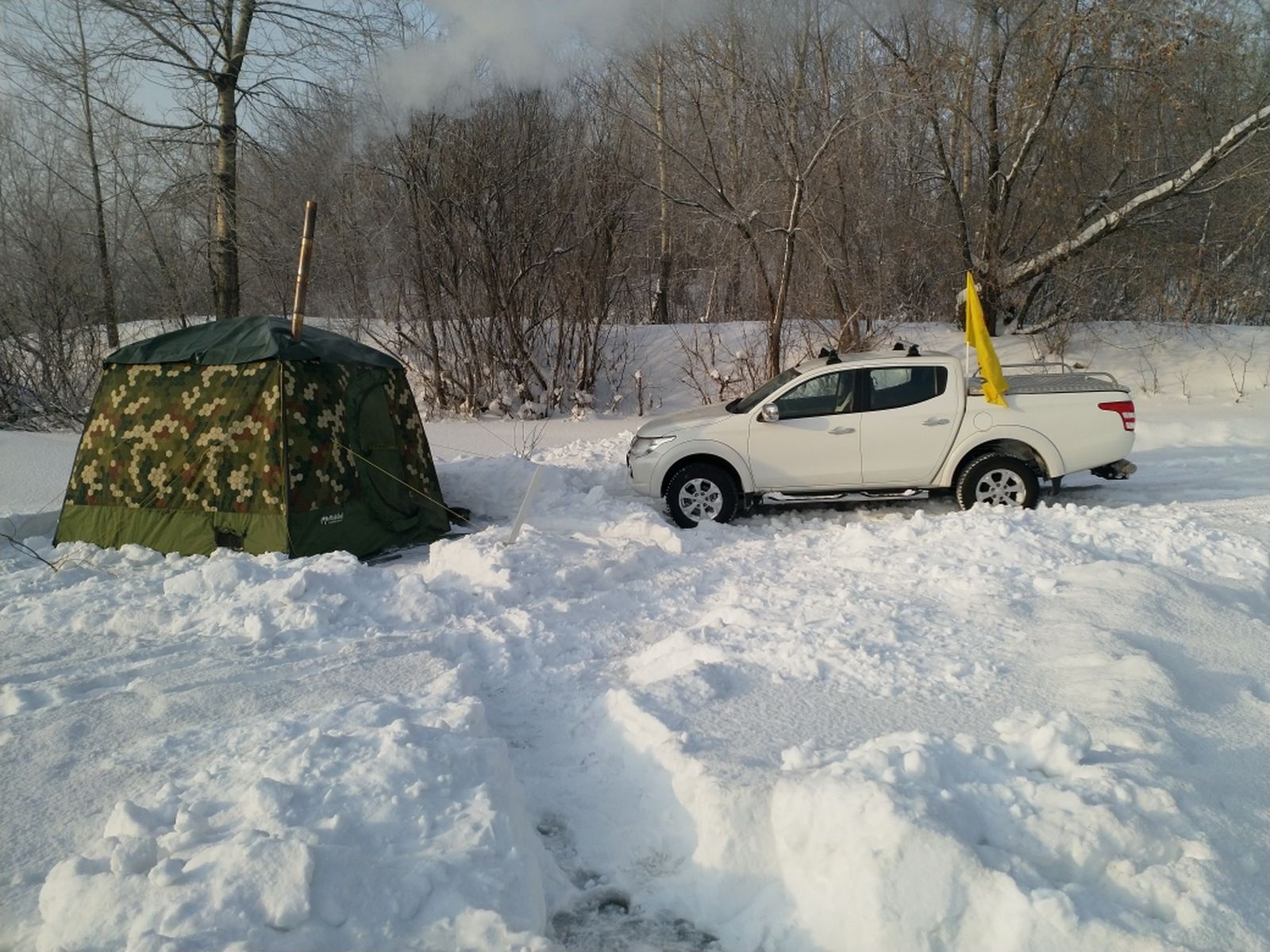 Что ещё надо мужику, чтобы правильно встретить старость (зачеркнуто), зрелые годы (зиму, Новый год, День рождения - кому что больше подходит)? Правильно - джиповый пикап, надежный товарищ, природа, Мобиба, прорубь!
