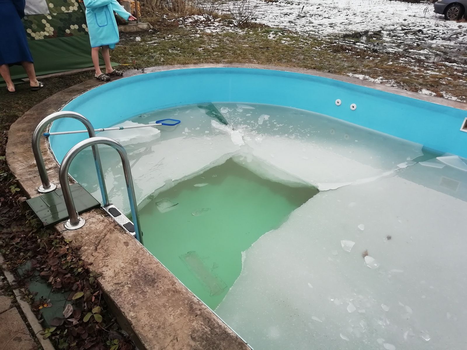 От разгоряченных тел, лед даже поплавился и треснул в бассейне!)))