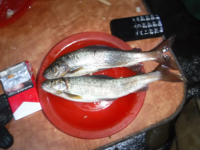 Затем нарыли под снегом сосновых шишек и за 15 минут закоптили хариуса, водрузив коптилку на Шикардос.