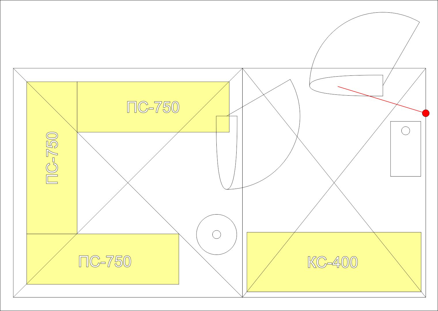 Дверь скорее всего будет соосна основной (вопрос элементарной безопасности), гипотетическое расположение в предбаннике КС-400 - думается это скорее всего именно размерность около 2 метров, практического смысла ставить кровать в предбанник пока не уловил. Разве что лечь полежать после бани, и то скорее всего в отсутствие второй печи и по левой стороне, а то затопчут
