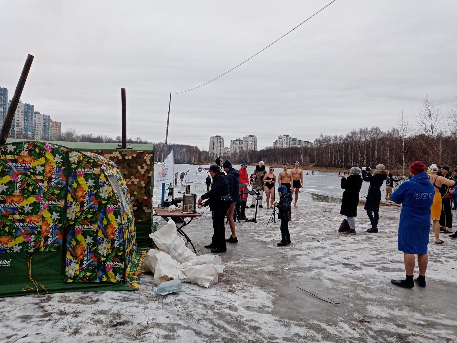 Я приехал последний на место событий. Походил, посмотрел и решил, что я не рыжий и поставлю я свою Десяточку на льду, по-ближе к проруби. Спросил у организаторов разрешения и вперёд, но там были ещё и сотрудники МЧС, так как мероприятие официальное. Я подошёл к ним и сказал, что сейчас поставлю ещё одну баню на льду. Они: "Да ради Бога"! Ну я чего: сказано сделано! Собрал 10, принёс полок, лавочку, Медиана почти сама пришла. И тут бежит один сотрудник МЧС и говорит мне:"Ая Яй! не надобно так делать". Короче чухнули они, Чаво я собрался замутить. Спорить с ними бесполезно, да и не надо оно нам. Попросили меня любезно перенести всё на берег. В итоге я любезно всё поставил возле берега, но на льду и около проруби. Договорились мы короче: они довольны, что приняли меры, а я что остался при своём.