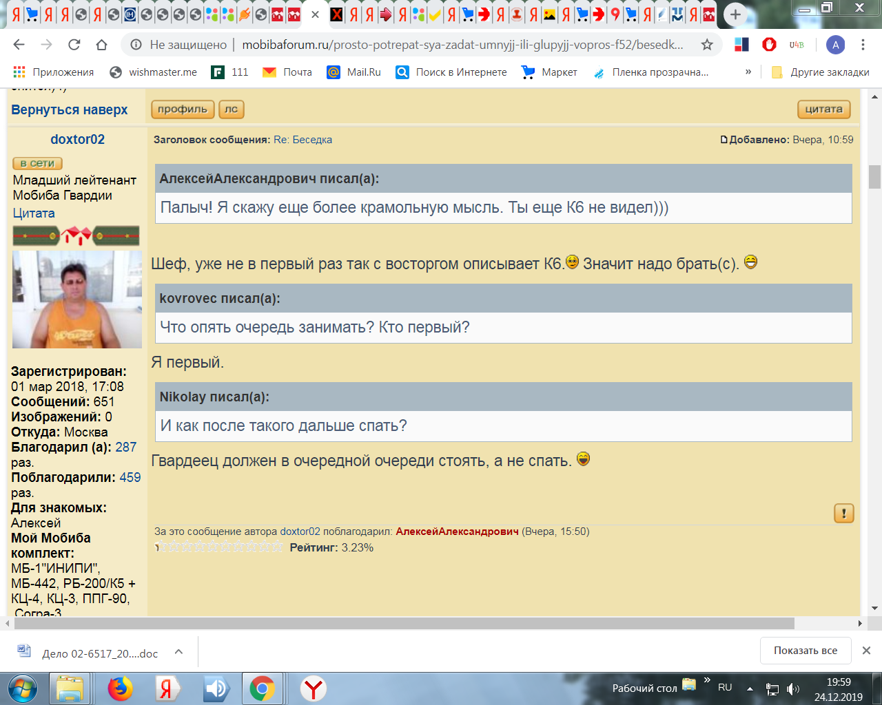 Открыл, а то тут уже очередь начала образовываться.Большой Палыч писал(а):Когда ты в первый раз про К6 сказал, я сделал вид, что не заметил. Когда второй - тоже сделаю также. А все потому, что уже не первый год мы знакомы!))) Я ведь знаю, что чем больше я (да и все мы) будем спрашивать, тем позже мы узнаем истину. А позже - не хочется, хочется "вотпрямщас", для чего и следует проявить терпение.)))АлексейАлександрович писал(а):В К6 и трое войдут на ночлег, и четверо даже)). А вес останется почти таким же. Волшебство Мобибы!