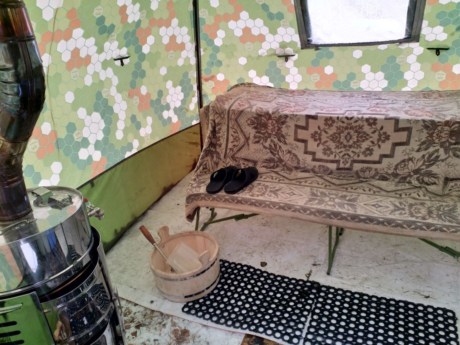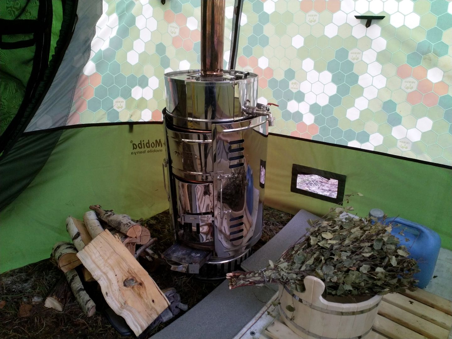 Палатку поставил в полном комплекте, пол утепленный, внутренний тент, ИЗН результат сильно порадовал - очень быстро паробомбочка загнала нас товарищем под лавку. Кондиции пара получаются как в теплый период при однослойном использовании МБ 15. Так что если у кого есть внутренний тент, то надо его обязательно использовать, не лениться потратить время на возню с его установкой, что с лихвой окупится при банных процедурах и расход топлива уменьшился наверно в половину.