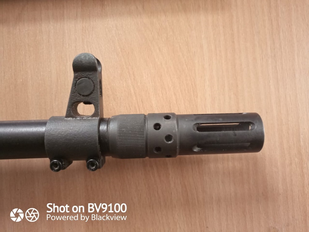 Но на данном карабине задачи по повышению кучности, точности и всего прочего не стояло (штатное состояние вполне устраивает), потому резьбу я использовал совсем для других целей: для установки пламягасителя. А вот это – нужная штука. Дело в том, что оружие с «голым» (т.е. без ДТК или пламягасителя) дульным срезом, дает шарообразную вспышку выстрела, по крайней мере, со стороны стрелка она кажется именно такой. Эта вспышка вредна тем, что при стрельбе в сумерках она «засвечивает» глаза стрелка, причем – в самом нужном месте. Это всегда некомфортно, а очень часто – критично, и даже опасно. Именно поэтому на дульную резьбу был установлен пламягаситель. Функция его проста: он «рассекает» шар пламени на сектора. Тоже, конечно, приятного мало, но поле зрения стрелка оказывается «засвеченным» не полностью, а лишь частично: это примерно как смотреть на мир через радиальную решетку из толстых прутьев. Можно, конечно, установить какой-либо мощный пламягаситель или ДТК (например, Ильина или «Ночь»), но это – дополнительная масса и габарит, потому – отказался. Вообще говоря, именно по причине борьбы с ослеплением ДТК или пламягасители установлены на всех моих рабочих стволах. Осталось только автоматический газовый регулятор (переключение автоматики карабина с 12х70 на 12х76) поставить, и карабин станет отвечать всем предъявляемым мной к нему требованиям. Но о производстве данного узла отечественными оружейниками (по крайней мере, о качественных и надежных) я не слышал, а взять его импортного производства после введения санкций стало практически невозможно… по крайней мере по цене, не превышаемой стоимости самого карабина.