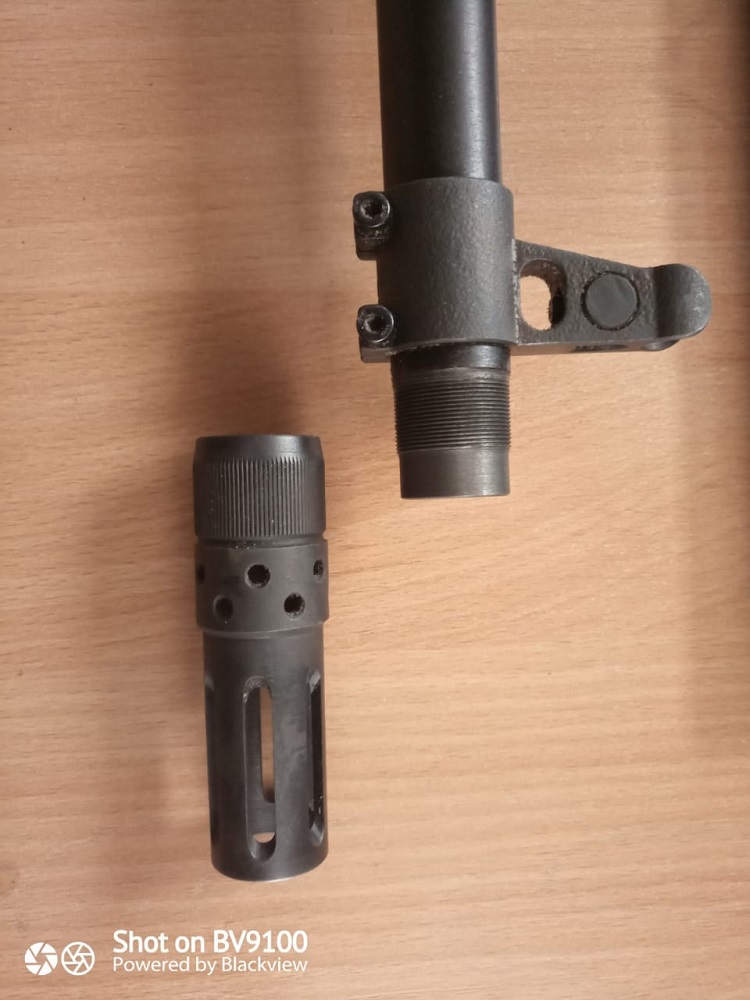 Но на данном карабине задачи по повышению кучности, точности и всего прочего не стояло (штатное состояние вполне устраивает), потому резьбу я использовал совсем для других целей: для установки пламягасителя. А вот это – нужная штука. Дело в том, что оружие с «голым» (т.е. без ДТК или пламягасителя) дульным срезом, дает шарообразную вспышку выстрела, по крайней мере, со стороны стрелка она кажется именно такой. Эта вспышка вредна тем, что при стрельбе в сумерках она «засвечивает» глаза стрелка, причем – в самом нужном месте. Это всегда некомфортно, а очень часто – критично, и даже опасно. Именно поэтому на дульную резьбу был установлен пламягаситель. Функция его проста: он «рассекает» шар пламени на сектора. Тоже, конечно, приятного мало, но поле зрения стрелка оказывается «засвеченным» не полностью, а лишь частично: это примерно как смотреть на мир через радиальную решетку из толстых прутьев. Можно, конечно, установить какой-либо мощный пламягаситель или ДТК (например, Ильина или «Ночь»), но это – дополнительная масса и габарит, потому – отказался. Вообще говоря, именно по причине борьбы с ослеплением ДТК или пламягасители установлены на всех моих рабочих стволах. Осталось только автоматический газовый регулятор (переключение автоматики карабина с 12х70 на 12х76) поставить, и карабин станет отвечать всем предъявляемым мной к нему требованиям. Но о производстве данного узла отечественными оружейниками (по крайней мере, о качественных и надежных) я не слышал, а взять его импортного производства после введения санкций стало практически невозможно… по крайней мере по цене, не превышаемой стоимости самого карабина.