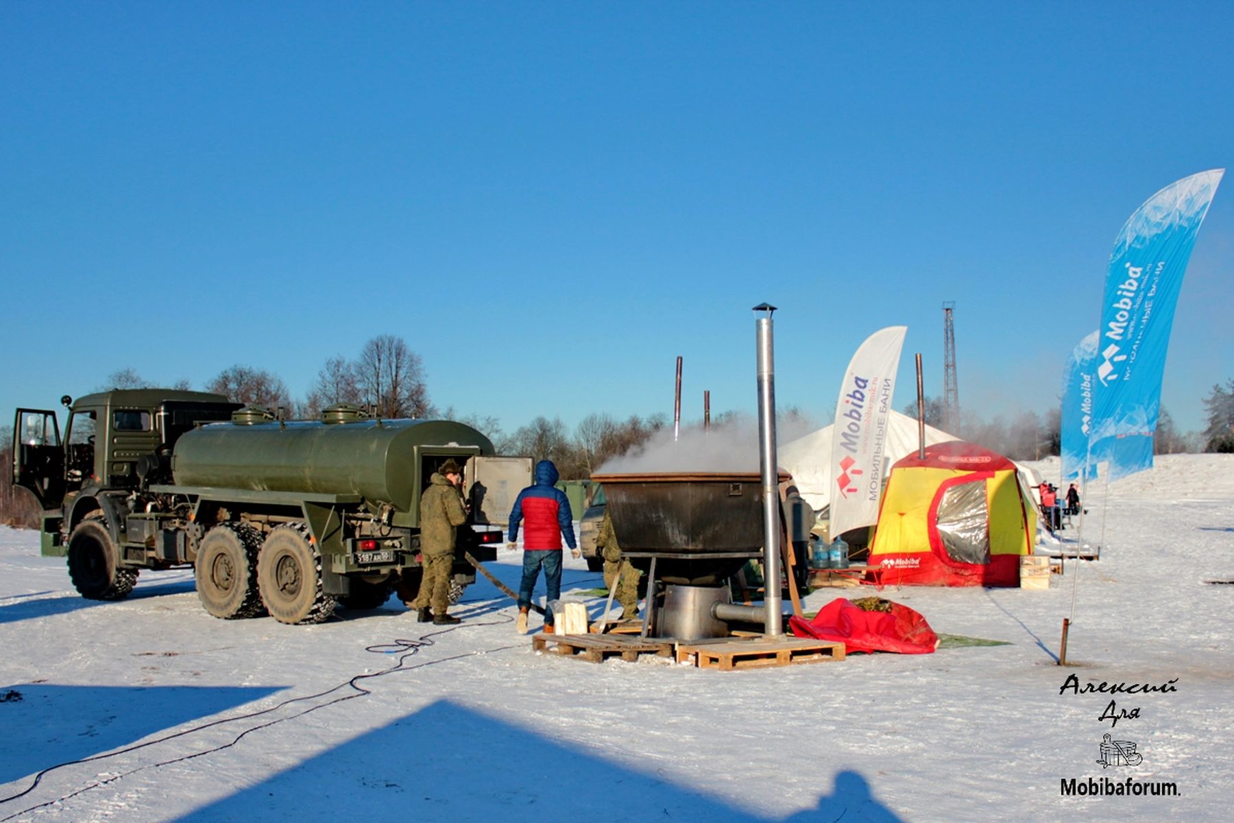 Нам хотелось,конечно в первую очередь протестить кц4 в мб-15 с внутренним тентом .В 8 утра у нас уже всё было установлено,ждали воду. Было около 10 мороза ,перекачные насосы замёрзли,пока военные думали как её извлечь из Ёмкости,было уже около полудня...