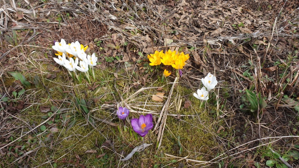 На грядках уже появились крокусы