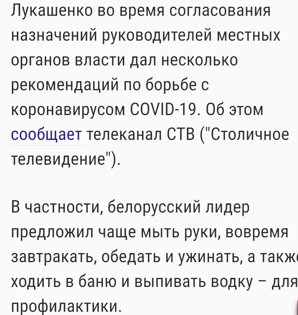 Да. Спасибо Сергей. Сегодня в группах вацап какое то паникёрство стало. Естественно мамашки в школьном чате начали писать что у нас в школе обнаружили у кого то корона вирус. А меня хлебом не корми, дай провести расследование и докопаться до первоисточника паники. Естественно оказалось как в том анекдоте-- и не выиграл, а проиграл, и не в карты, а в спорт лото, и не миллион, а 3 рубля.Batman писал(а):Леша, ты про этот ролик?