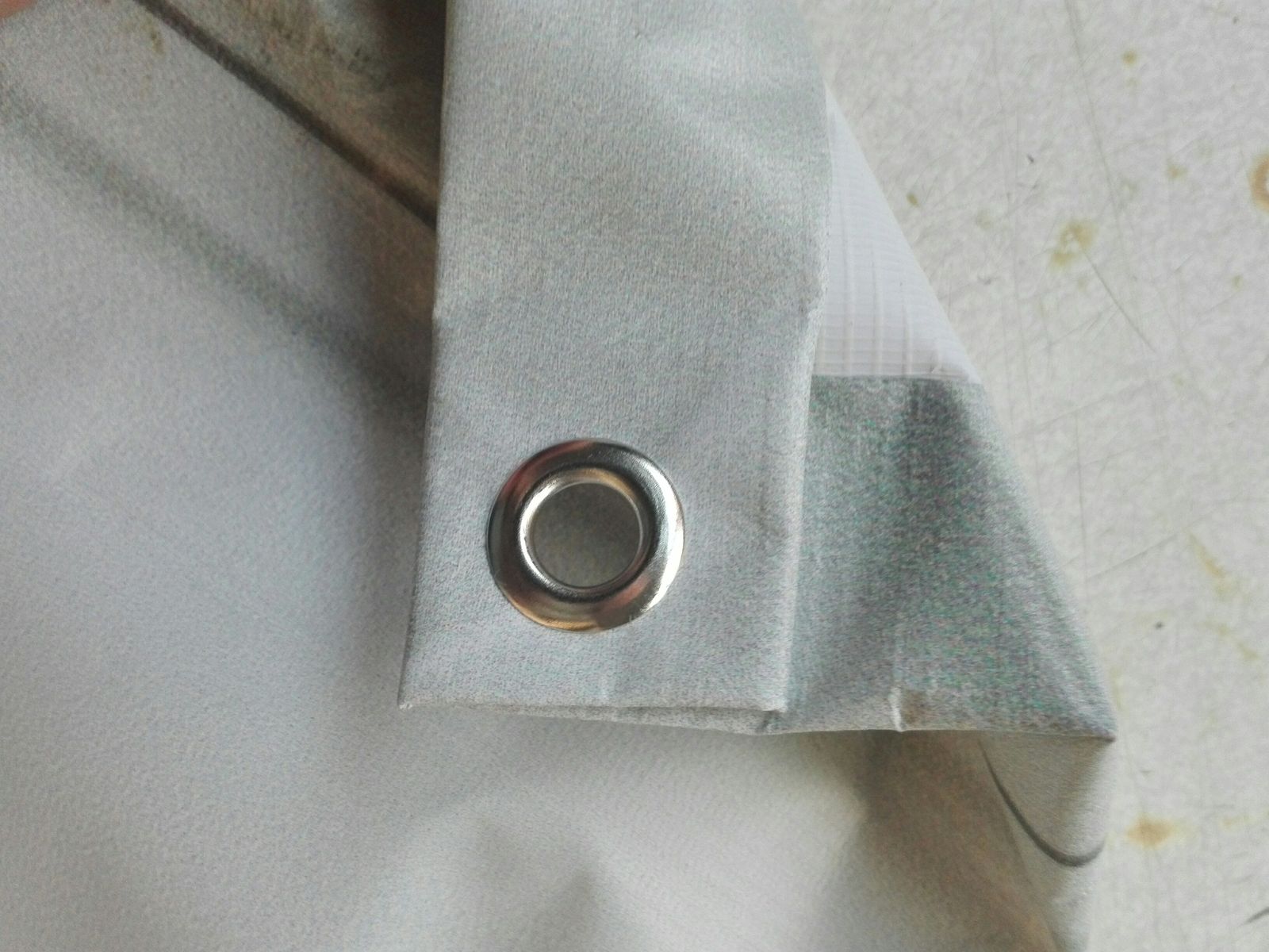 И так по всем углам и по 3 люверса дополнительно на каждую сторону.