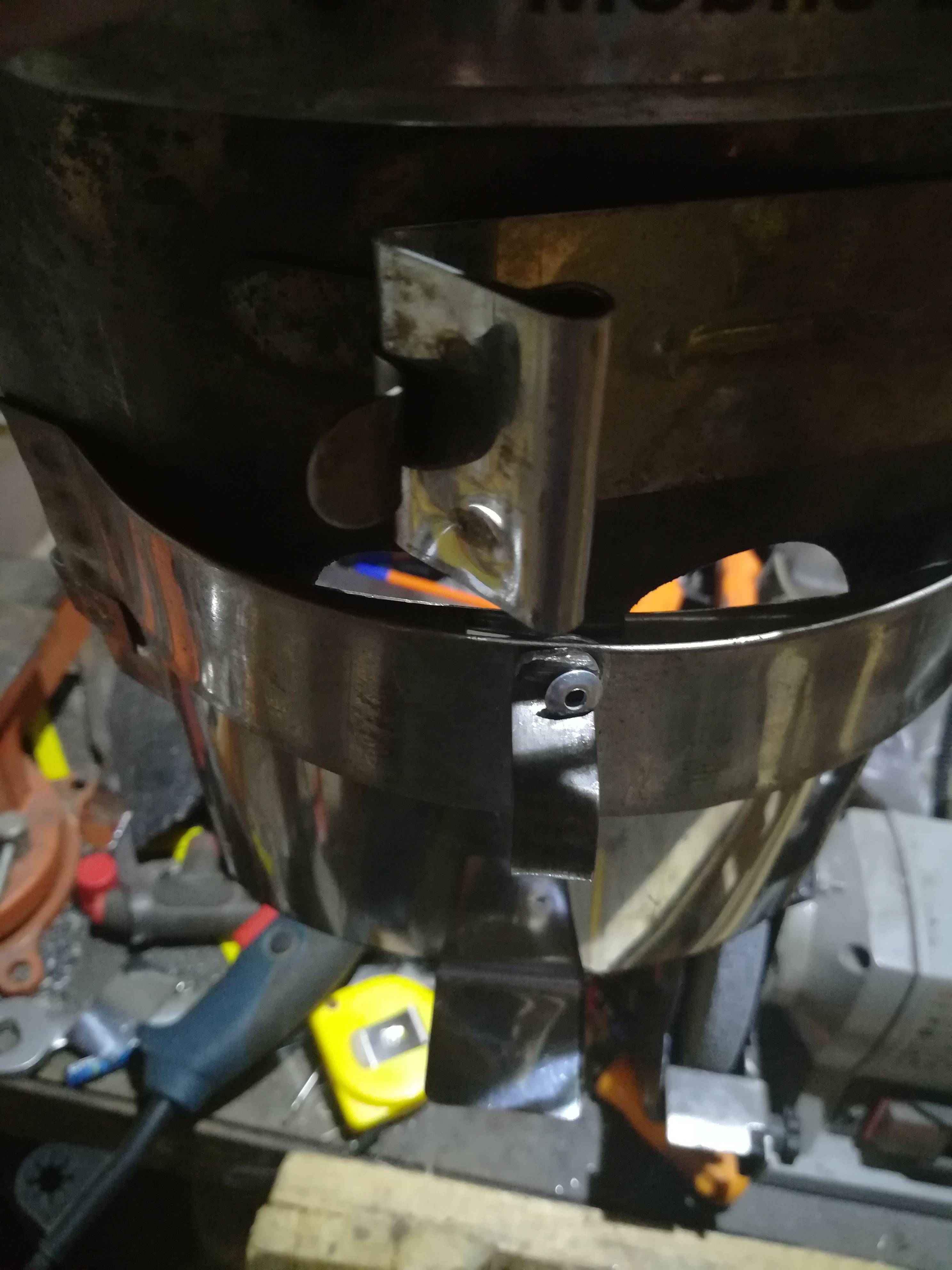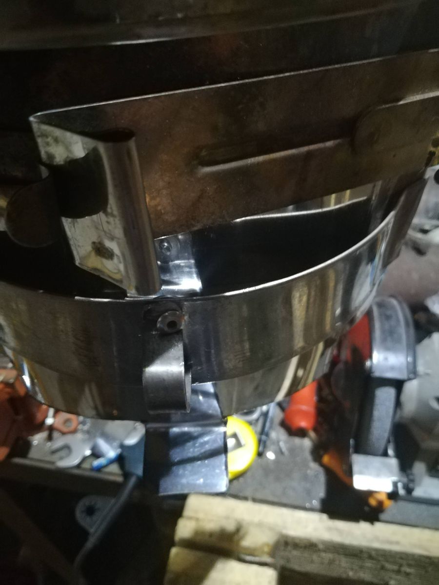 По поводу каменной закладки сверху на крышку - вообще особой проблемы не видится: круглая решетчатая конструкция с радиально закрепленным кольцом в центре миллиметров 94 в диаметре, а сверху крышка такого же конструктива как в аэрогриле, застегивающаяся в проушины на нижней части по принципу штатного донца.