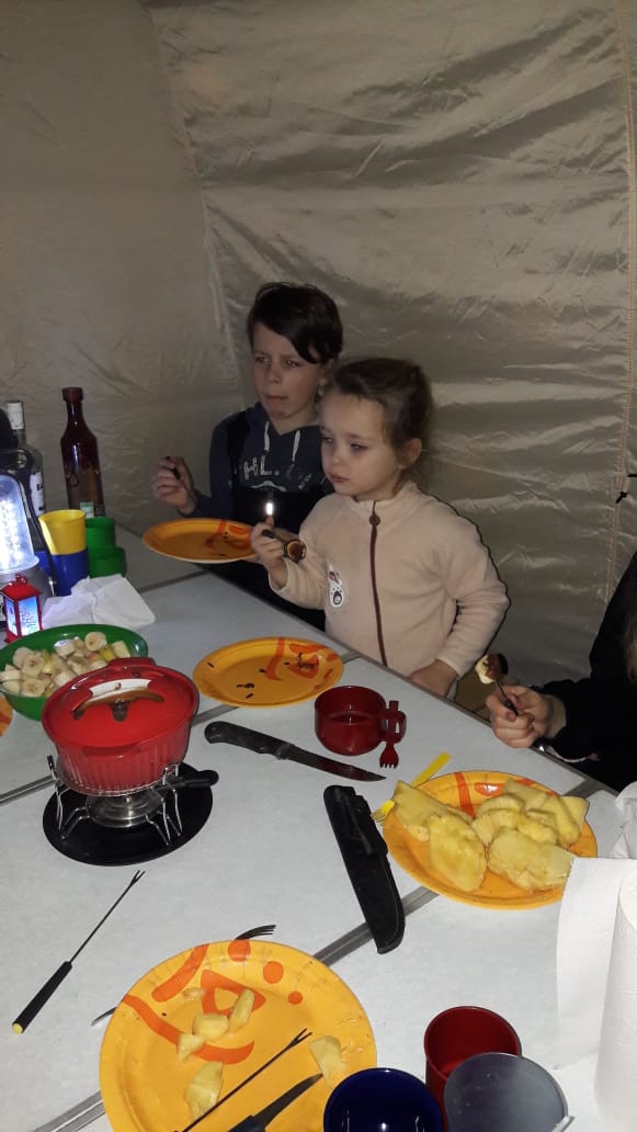 Решили мы своим близким попытаться сделать сказку на новый год(надоел нам медвепут) . Готовится начали с июня. Заказали и дрова(тонна пилетов) и развлечения (снегоходы гирлянды салюты ...)и двадцать девятого декабря рванули строить лагерь . За два дня всё наладили . В р63 был жилой модуль с двумя мега сограми. В 104 была баня на всю длину ,её прогревала медиана5 парафон 3 и паробомба (дома оставили вторую паробомбу так как многие любят поспать с парафоном на полках при медленной прожарки:) . Кухня была обустроена в 442 с мега согрой. Туалет в парнике(самоделка из полипропиленовых труб и плёнки) с согрой (пришол к тому что хочу мб22 под туалет ) и тут снимаю шляпу перед проектировщиками ! Не так легко оказывается сладить полатку под туалет:)))) ни кто не примёрз к био туалету и сам он не замёрз согра обогревала на 5 с плюсом! Была купель собственной сварки(она разборная) чашка пвх(два куба с озера прогрели часа за 4 до 40 гр . Печь самоделка из медной трубы. В р63 были переделаны раскладушки гринэл в двухярусные . Поэтому жили в два этажа. (На вопрос в выше постах отвечу точно не нужно опускать палатку. ) Кровати ооочень всем понравились . Пришол к выводу что стакими кроватями в 104 можно жить в 4 в месте с вещами и останется место под кухню в ней же. Палатка очень удобная, тёплая, светлая ,двери просто огонь(в зимних вещах очень тяжело ходить в маленькие двери ,а тут хоть на Санках залетай. Полы очень крутая вещь комфортно ходить босиком. Не боишься проживать момент когда дети сели народ так как понемаешь что они промёрзнут не раньше чем через часа два (если не двигаться вовсе) в общем и целом люди прожившие 12 дней в р63 (которые впервые спали зимой в палатке) а это 8 человек основного состава не смогли найти ни одного минуса в током жилье и проживание и всё спросили а поедим ли мы есчё и возьму ли я их с собой:)))