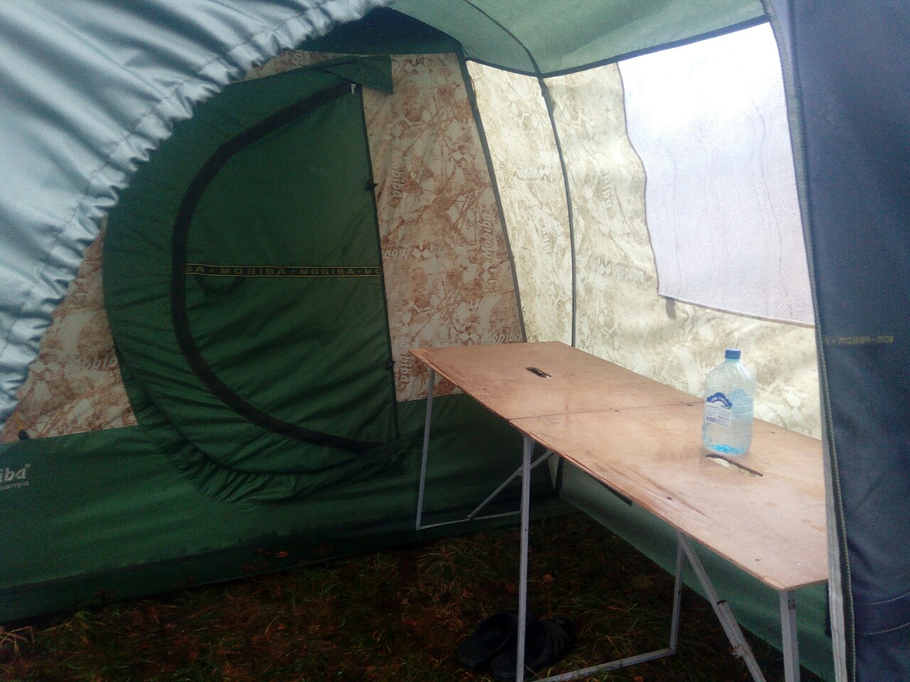 Сама ткань палатки и крыши достаточно хорошо пропускает инфракрасную часть спектра, причем двухслойность помогает, но недостаточно. А потом мы перестали вые*ваться и форсить новенькой палаткой, накинули сверху тент 6х4 из синего тарпаулина, и вот оно счастье! Можно просыпаться когда захочешь, а не когда тебя солнышко позовет