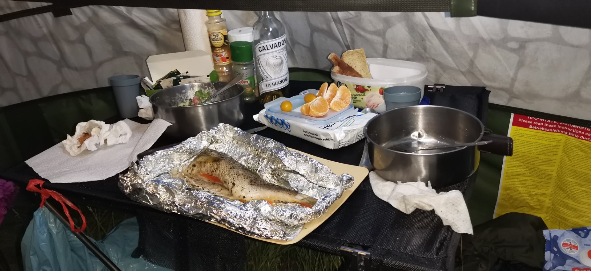 Решили перекусить и погреться чаем. Даже водостойкие перчатки промокли и стали колом на морозе. Дальше ловил без них.