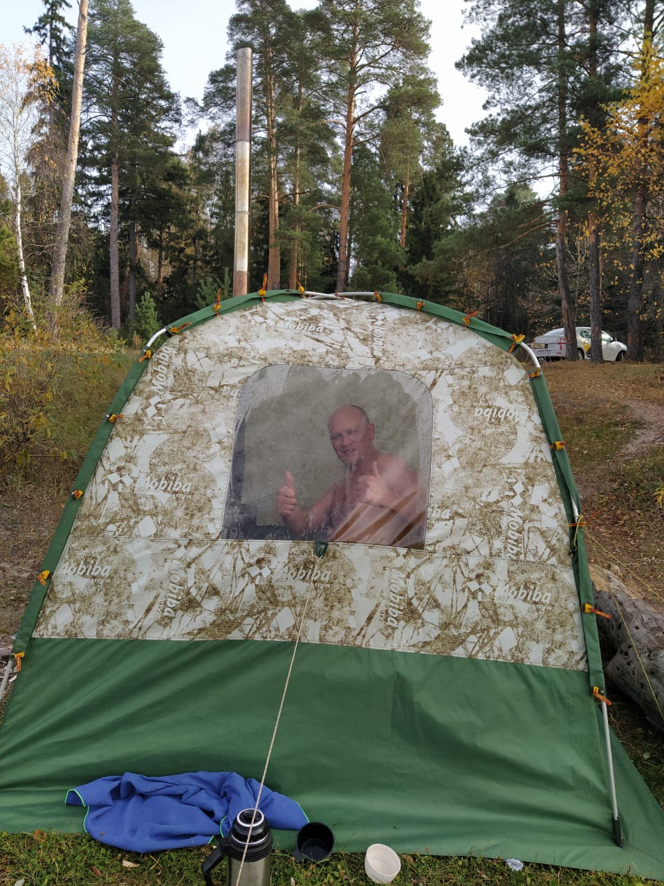 В выходные был обычный выезд с ночёвкой на природе и баней в К-5. Осень такое классное время года, когда можешь остановиться на любом приглянувшемся озере и выбрать место для стоянки неспешно. Так и мы ехали на Пустынь за 130 км, но встали на озере Кузьмирь в 65 км от дома, просто сверну с дороги посмотреть что за водоём такой на карте. Парились субботу и воскресенье, жарили форель(купленную в магазине) на шикордосе. Вечером костёр в нем же. Отлично отдохнули.