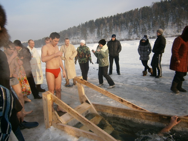 В моём регионе зимой реки водоёмы промерзают настолько, что сделать прорубь не представляется возможным. Толщина льда на Ангаре до полутора метров, на Белой до метра, местные озёра тоже промерзают до метра. Я пытался дважды со Штилем товарища сделать прорубь, убил полдня, вымок и уделался сам так, что никакой бани уже не хотелось. Выход, конечно, есть - это незамерзающая таёжная ключевая речка Иреть - вот там мы и отрываемся. Но не часто, примерно раз в месяц, ведь до неё почти 100 км и зимой ещё холоднее, чем у нас в городе примерно на 10 градусов.