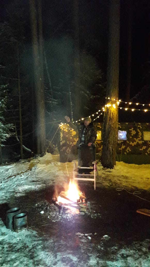 Решили мы своим близким попытаться сделать сказку на новый год(надоел нам медвепут) . Готовится начали с июня. Заказали и дрова(тонна пилетов) и развлечения (снегоходы гирлянды салюты ...)и двадцать девятого декабря рванули строить лагерь . За два дня всё наладили . В р63 был жилой модуль с двумя мега сограми. В 104 была баня на всю длину ,её прогревала медиана5 парафон 3 и паробомба (дома оставили вторую паробомбу так как многие любят поспать с парафоном на полках при медленной прожарки:) . Кухня была обустроена в 442 с мега согрой. Туалет в парнике(самоделка из полипропиленовых труб и плёнки) с согрой (пришол к тому что хочу мб22 под туалет ) и тут снимаю шляпу перед проектировщиками ! Не так легко оказывается сладить полатку под туалет:)))) ни кто не примёрз к био туалету и сам он не замёрз согра обогревала на 5 с плюсом! Была купель собственной сварки(она разборная) чашка пвх(два куба с озера прогрели часа за 4 до 40 гр . Печь самоделка из медной трубы. В р63 были переделаны раскладушки гринэл в двухярусные . Поэтому жили в два этажа. (На вопрос в выше постах отвечу точно не нужно опускать палатку. ) Кровати ооочень всем понравились . Пришол к выводу что стакими кроватями в 104 можно жить в 4 в месте с вещами и останется место под кухню в ней же. Палатка очень удобная, тёплая, светлая ,двери просто огонь(в зимних вещах очень тяжело ходить в маленькие двери ,а тут хоть на Санках залетай. Полы очень крутая вещь комфортно ходить босиком. Не боишься проживать момент когда дети сели народ так как понемаешь что они промёрзнут не раньше чем через часа два (если не двигаться вовсе) в общем и целом люди прожившие 12 дней в р63 (которые впервые спали зимой в палатке) а это 8 человек основного состава не смогли найти ни одного минуса в током жилье и проживание и всё спросили а поедим ли мы есчё и возьму ли я их с собой:)))