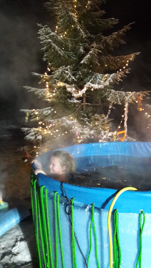 Решили мы своим близким попытаться сделать сказку на новый год(надоел нам медвепут) . Готовится начали с июня. Заказали и дрова(тонна пилетов) и развлечения (снегоходы гирлянды салюты ...)и двадцать девятого декабря рванули строить лагерь . За два дня всё наладили . В р63 был жилой модуль с двумя мега сограми. В 104 была баня на всю длину ,её прогревала медиана5 парафон 3 и паробомба (дома оставили вторую паробомбу так как многие любят поспать с парафоном на полках при медленной прожарки:) . Кухня была обустроена в 442 с мега согрой. Туалет в парнике(самоделка из полипропиленовых труб и плёнки) с согрой (пришол к тому что хочу мб22 под туалет ) и тут снимаю шляпу перед проектировщиками ! Не так легко оказывается сладить полатку под туалет:)))) ни кто не примёрз к био туалету и сам он не замёрз согра обогревала на 5 с плюсом! Была купель собственной сварки(она разборная) чашка пвх(два куба с озера прогрели часа за 4 до 40 гр . Печь самоделка из медной трубы. В р63 были переделаны раскладушки гринэл в двухярусные . Поэтому жили в два этажа. (На вопрос в выше постах отвечу точно не нужно опускать палатку. ) Кровати ооочень всем понравились . Пришол к выводу что стакими кроватями в 104 можно жить в 4 в месте с вещами и останется место под кухню в ней же. Палатка очень удобная, тёплая, светлая ,двери просто огонь(в зимних вещах очень тяжело ходить в маленькие двери ,а тут хоть на Санках залетай. Полы очень крутая вещь комфортно ходить босиком. Не боишься проживать момент когда дети сели народ так как понемаешь что они промёрзнут не раньше чем через часа два (если не двигаться вовсе) в общем и целом люди прожившие 12 дней в р63 (которые впервые спали зимой в палатке) а это 8 человек основного состава не смогли найти ни одного минуса в током жилье и проживание и всё спросили а поедим ли мы есчё и возьму ли я их с собой:)))