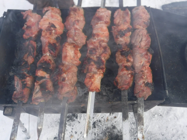 Парились допоздна, мы с товарищем с ночных смен, поэтому особо не усердствовали - зашли за всё время 4 раза. А вот женщины у нас разошлись. Подруга товарища очень любит баню, у них в доме хорошая стационарная, но в Мобибе парилась впервые. Сказала, что в этой парилке очень легко дышится, поэтому можно заходить много раз. Короче, мы сбились со счёту, сколько раз наши женщины парились и купались в снегу. Собирались по темноте, домой прибыли в 23.00.