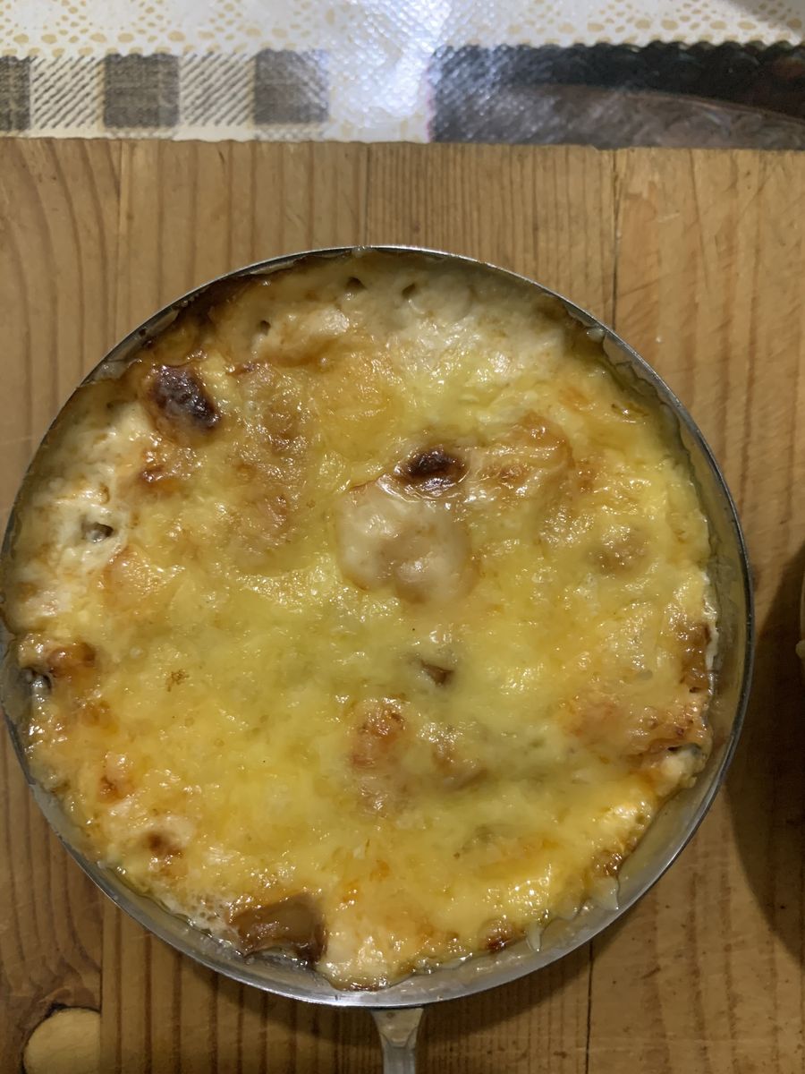 8.Раскладываем смесь (краб, шампиньоны и лук) по жульенницам