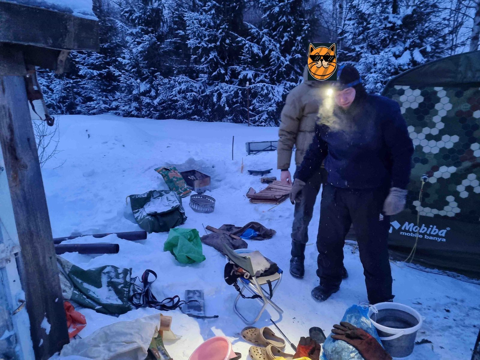 По итогу - тёплая переодевалка добавляет прилично комфорта, особенно в морозную ветреную погоду. Работ по монтажу лагеря конечно добавляется, но комфорт того стоит) Из дополнительных фишек - понравилась варочная панель на Согре, из-за отсутствия под рукой сковороды - варили на поверхности сосиски в котелке, предполагаю можно в дальнейшем использовать большой противень для готовки) В дальнейшем продолжим тестирование Согры уже в весенних водных походах и на зимних вылазках.