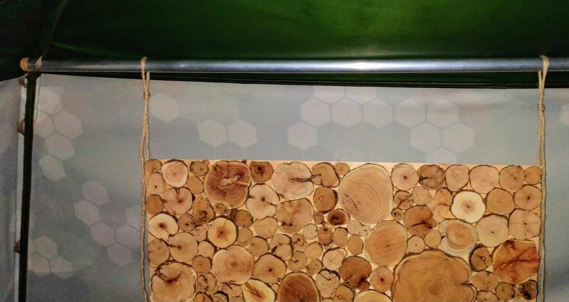 Решил проблему провисания стенки и крыши, перераспределив нагрузку. Раньше тянуло в середину, сейчас взял алюминиевую трубку диаметром 20 мм., по краям поставил заглушки из пробкового дерева, подвесил на петли. Всё замечательно держится, изгибания каркаса нет.