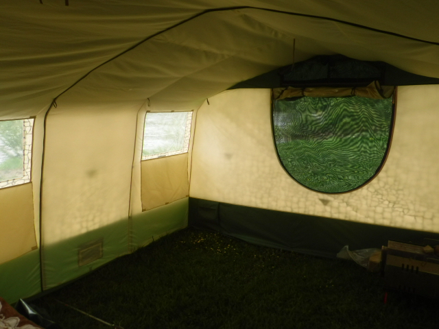 Р-436 в деле. Семейный выезд на реку с двумя ночёвками на двух авто. Всё раскисло от постоянных дождей, грязь месить не хотелось, да и ровные поляны для большой палатки на берегах нашей Белой найти не просто, поэтому встали под деревней Тюмень. Установили палатку за полчаса. Саня Петрович, извини, забыл сделать фото каркаса. Дети так увлеклись цеплянием крючков внутреннего купола, что пока я доставал фотоаппарат, они его уже установили. Следующий раз сделаю обязательно.