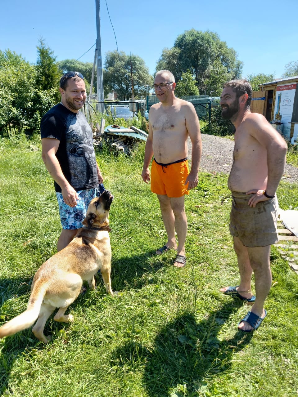 Ну а 20 июня в Подмосковье, Евгений Садилов "Питерский паровозик" провел школу обучения технике парения вениками по своей системе. Обучалась команда Мобиюа-Москва (к сожалению, не в полном составе).