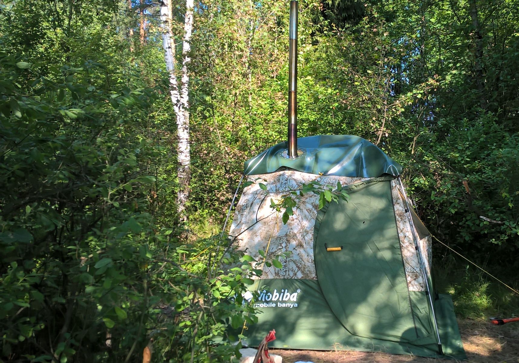 Доехав до места и найдя укромное местечко, быстро(почему то)вываливаю всё из багажника: вот все необходимое Немного суеты и у вас появляется настоящая баня! Вот прям где из багажника выпадет, там и будет