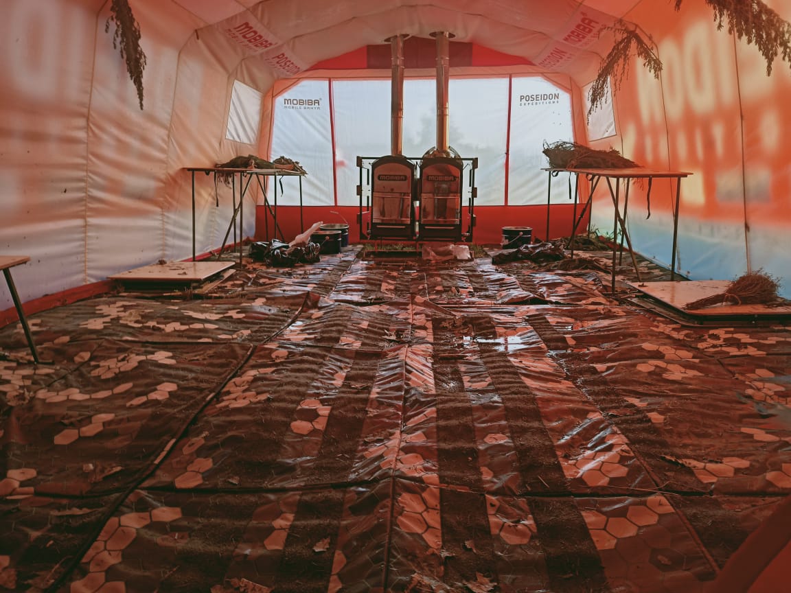 Так же был представлен жилой модуль на базе палатки Р-634 для самого Федора Филипповича, который будет использоваться для одиночного дрейфа на льдине на Северном Полюсе уже вот-вот. Двухслойная палатка с панорамными окнами, внутри спальный утепленный модуль с МегаСогрой, модифицированной системой дымоудаления, удобная кровать, спальные принадлежности....