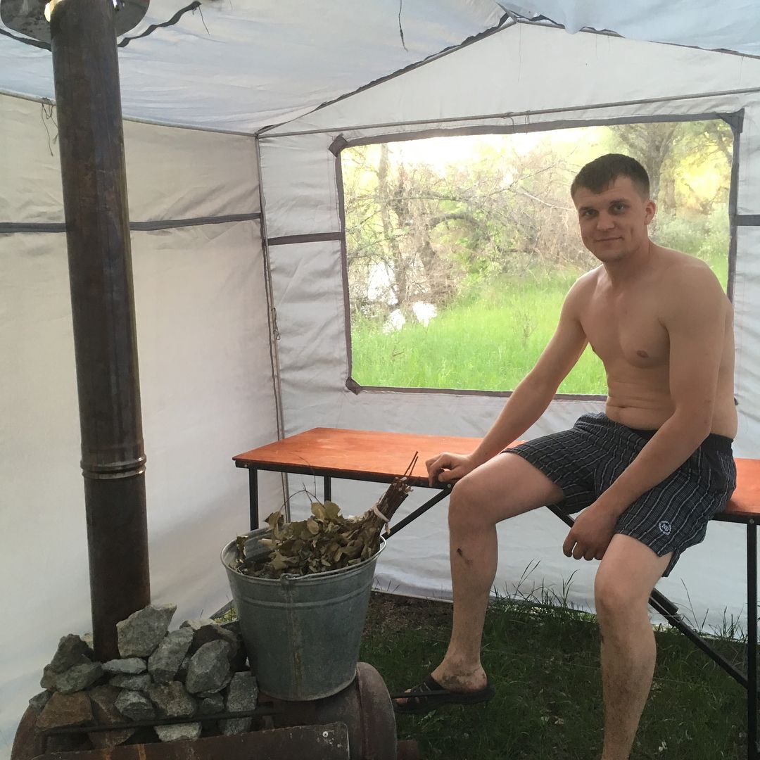 Сварил печь горизонтальную, без колосниковую, без искроуловителя (об искроотделении как и о мобибе я тогда не знал.) Поставили палатку , печь затопили и офигели как там было жарко, друг говорит6 "Тут как в бане". На следующий день я в ютубе в поисковик забиваю "Баня палатка", вылетают видео с полуголым накачанным бородатым мужиком с подписью "Мобиба". Так я узнал о платках и печах "момбиба" и стал фанатом "Мобибы". Посмотрев ролики я понял что денег есть только на материал, печь уже есть. Проблема встала с каркасом, фигня покупаю в метизном трубки из аллюминия, тогда я не понимал чем он отличается от д16т. И вот моя первая баня 2х3 с парилкой 2х3, сшитая на "зингер"