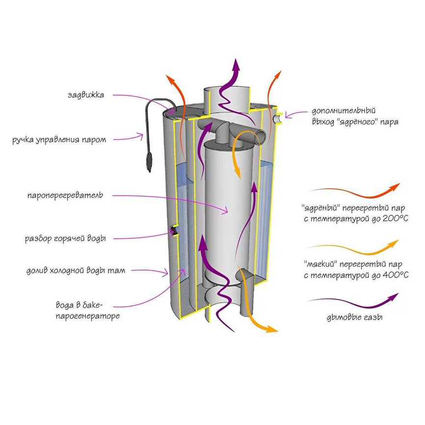В чем смысл объединения сырого и перегретого пара. Эта история идет еще от Аквапечи Куценко, в которой он долго долго не мог создать нормальный ППГ, с эффективностью как у Скоропарки (ВСЕ ИМХО). И выход сырого пара был сначала технологической необходимостью, а потом его заценили "как особый вкус" и с тех пор носятся с сырым паром "как курица с яйцом". Испытания того же микса пара со Скоропаркой (ЮРА Чичик) показало, что такое не нужно, плохо, однако он же потом переобулся на Акву и сырой пар стал теперь ему вкусным.