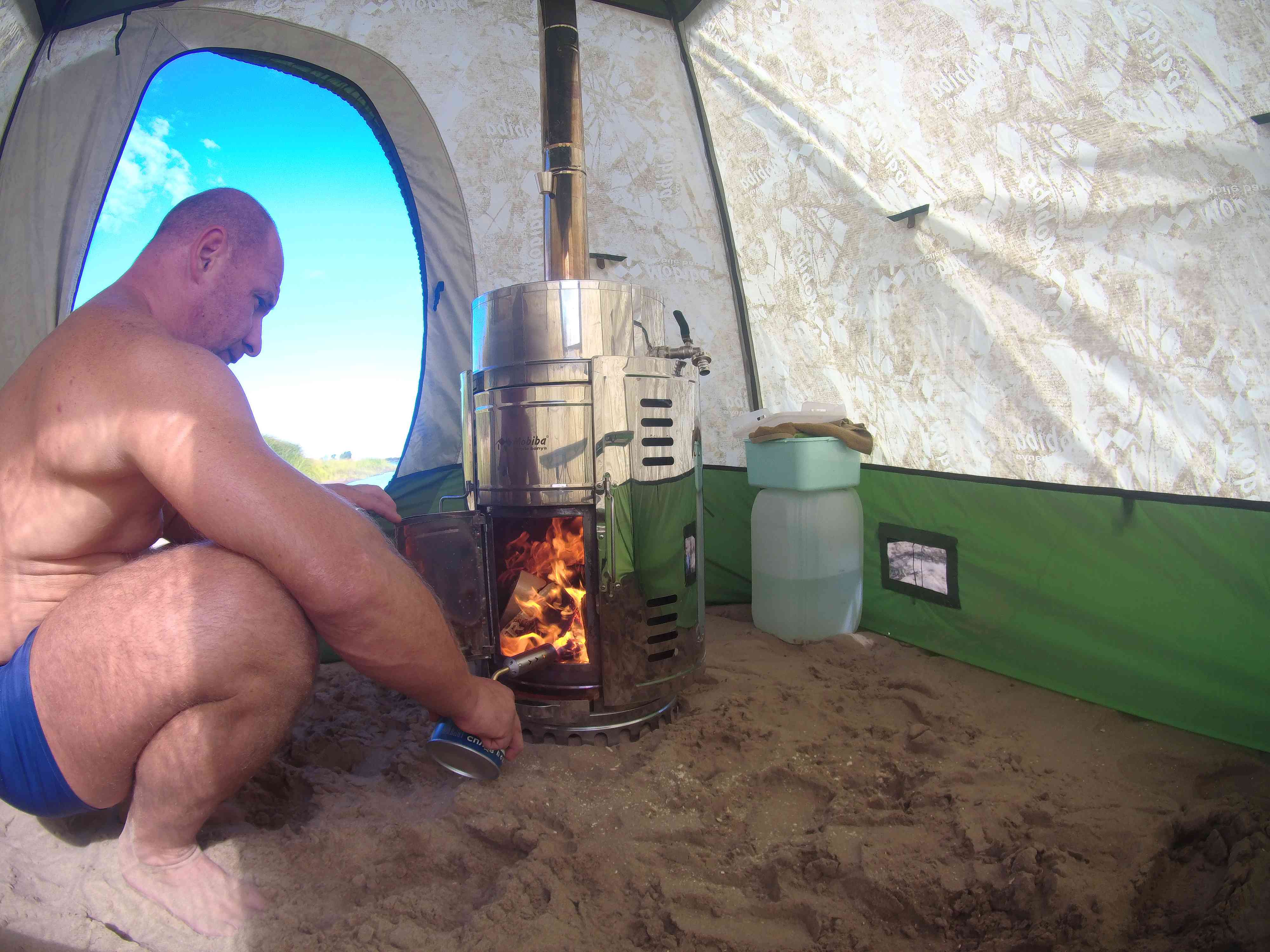 И отличный предбанник зимой, когда прекрасные дамы выходят посидеть-отдохнуть из парилки, но не хотят ослепить всех посторонних мужчин красотой своих голых задов на многолюдном зимнем пляже возле крещенской проруби. И даже с возможностью посидеть почти без конденсата перед Согрой.