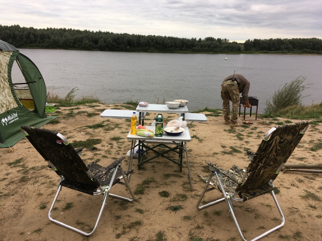 Здравствуйте люди добрые!Вот и настала осень,а это значит,что можно насладится комфортным контрастом температур и отдохнуть от жаркого лета,ночи становятся прохладнее и водичка в водоёмах бодрит лучше) Сентябрь,мы с другом решили выбраться на пару тройку ночей,попариться и просто отдохнуть не далеко от Рязани,на красивейшем берегу реки Ока. Взяли с собой мою любимую прозрачную МБ-104,использовали её как палатку и МБ-10 как баню! Для начала,убрали за свиньями место под лагерь,подмели бычки и собрали различный мусор,потом с лёгкостью,за считанные минуты,так как очень хотелось попариться,собрали палатки и понеслось) Далее мангал(Шикардоса пока нет((,шезлонги,стол кухня,мясо,кукуруза,грибочки,картошечка и всяко разные плюшечки-вкусняшки!Парились и купались до ночи,вода в реке была ну очень холодная,мне понравилось) В бане поддерживал температуру 85-90,иначе веники не так кайфово обжигали кожу,ну а потом,естественно релакс в хамаме,ой как я люблю такую кульминацию) Потом сидели и залипали в костёр,я сделал из палена свечу,горела долго и интересно! Для обогрева в 104 использовали Медиану(Согру пока не купил(( Ночи ещё не холодные +9,но спать без обогрева некомфортно,даже с НТ-104. Подкладывали по одному брикету руф,раз в два/три часа,в виде аккумуляторов тепла,положил на печурку кирпичиков.Кто гоняет Согру подскажите,как она при таких температурах,сколько за раз закладываете топлива,какая т-ра в помещении?Лёжа на раскривушках,через панорамные окна наблюдали за проходящими мимо баржами,у них настолько мощные прожектора,что освещали наш лагерь и уходящую вдаль воду.Проснувшись пораньше,были очень удивлены туманом,сие чудо выдалось настолько густым,и обильным,что в воздухе были видны малюсенькие капельки,а на полевых цветах все паутинки,потрясающее зрелище! Отдохнули ну просто замечательно) Ну,немножко пожалел,что не взял донки и спиннинг,рыбка так вкусно плескалась,особенно рано утром… Уезжать в цивилизацию не хотелось ну никак !
