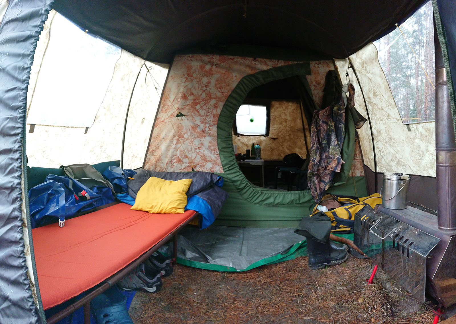 Еще перед походом я настойчиво рекомендовал парням обзавестись кроватями, и за пару дней даты начала Серега написал в общем чате, что раскладушка куплена. Чем автоматически прописал себя в тамбур. Благодарил потом за мою настойчивость.